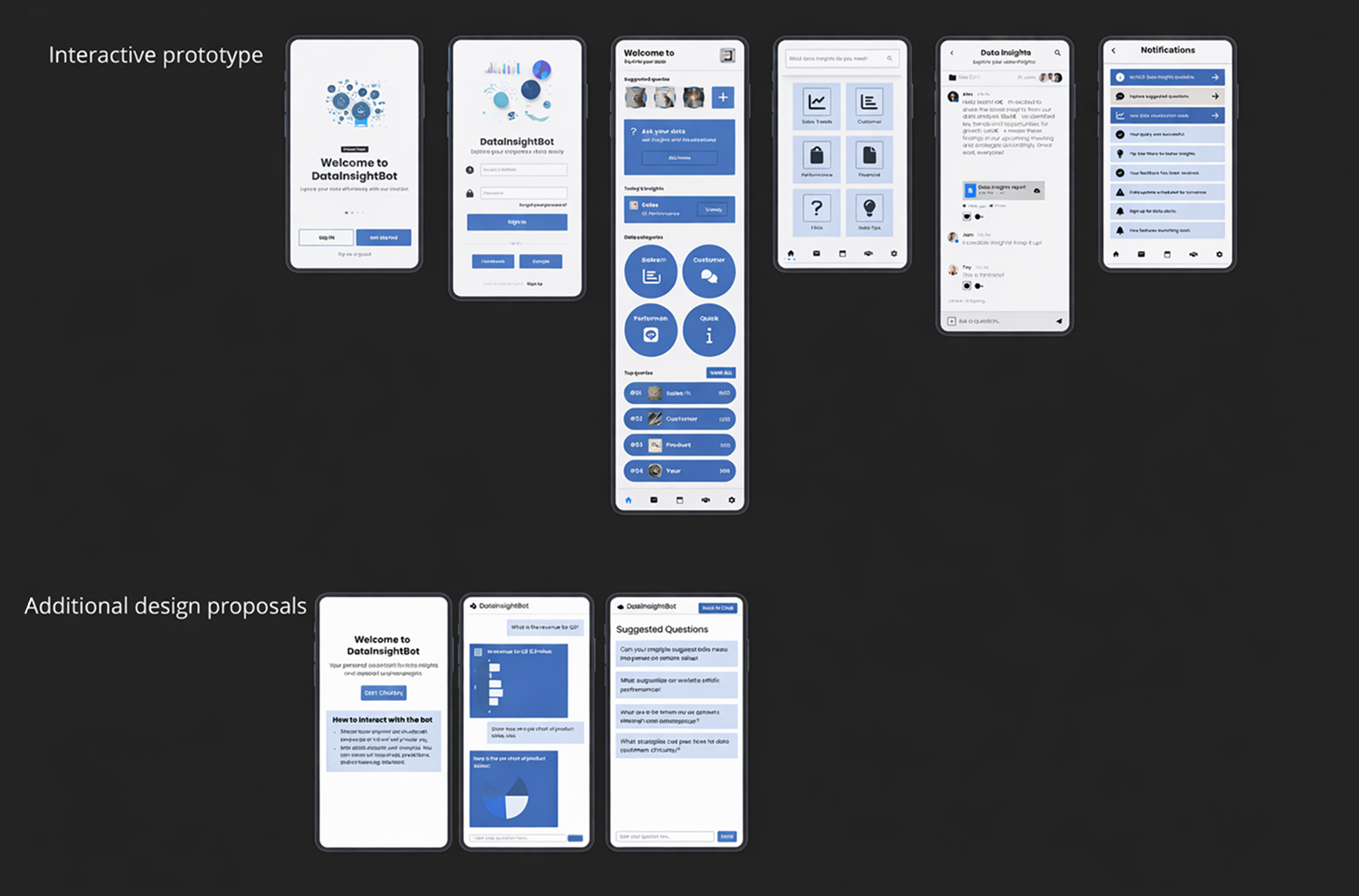 The final design presents Insight Agent as a conversational interface that allows users to explore complex data through natural language.