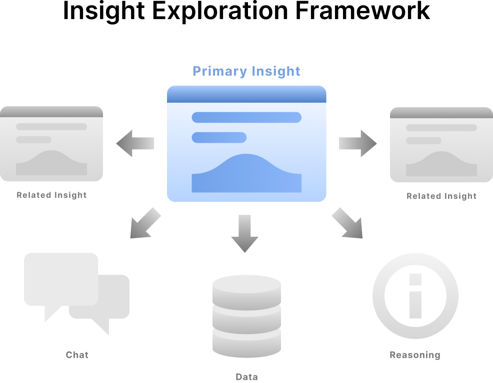 Each insight acts as an entry point into a deeper understanding of what is happening in the data. The experience is structured so users can explore insights in complementary ways: